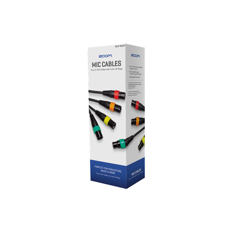 Câbles Microphone XLR Zoom XLR-4CCP avec Bagues d'Identification Couleur (2,5 m, Lot de 4)