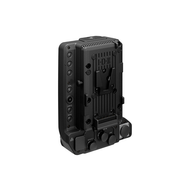 vers EOS Série C, Entrée de signal SDI de retour, Télécommande B (RS-422), Ethernet, Prise en charge du signal Tally, plaque de batterie V-mount (avec D-TAP), Borne d'objectif à 12 broches, Sortie CC 12V-2A