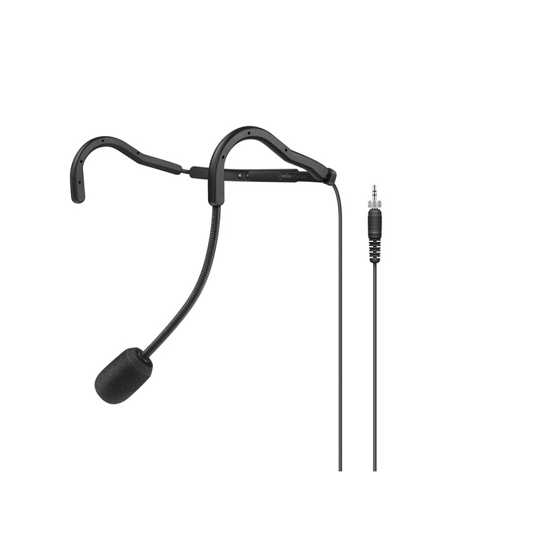 Micro fitness serre-tête (supercardioïde) conçu pour résister à la transpiration avec une sangle de cou ajustable et une perche de micro flexible. Avec (1) bonnette anti-vent HT 747, noire
