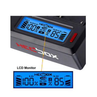 The Hedbox RP-DC50 Digital LCD Dual Battery Charger Kit with RP-DBPU Battery Plates is a two-bay solution that safely charges your batteries while providing a 2.1A, 5 VDC USB output. Two Sony BPU-compatible battery plates are included in this kit.
