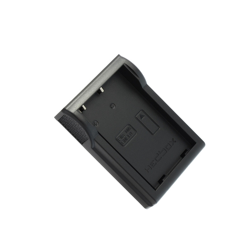 The Hedbox DV Charger Plate for Nikon EN-EL9 is an interchangeable battery plate for the Hedbox RP-DC50, RP-DC40, and RP-DC30 DV battery chargers.
