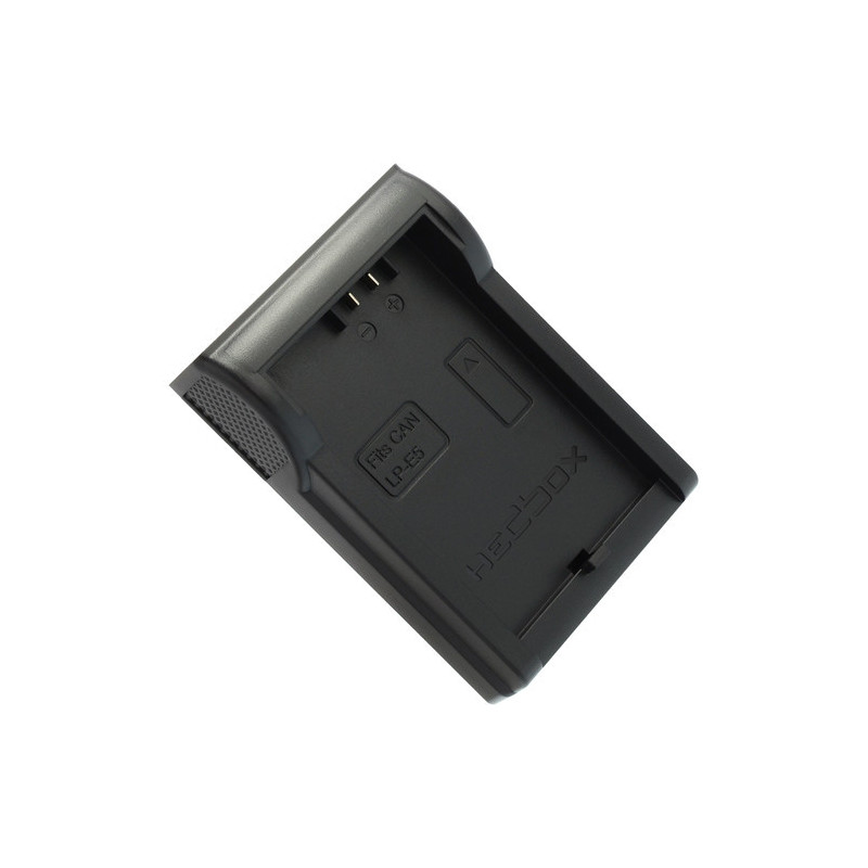 The Hedbox DV Charger Plate for Canon LP-E5 is an interchangeable battery plate for the Hedbox RP-DC50, RP-DC40, and RP-DC30 DV battery chargers.