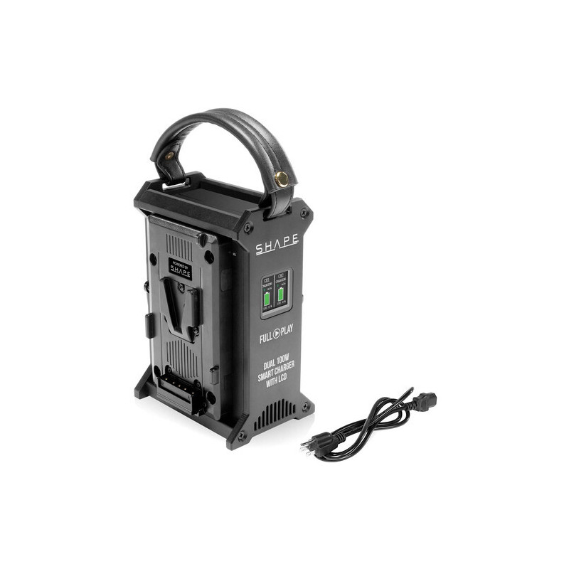 Chargez simultanément deux batteries V-mount avec ce chargeur rapide double V-Mount SHAPE FULL PLAY 100W avec écran LCD. Le chargeur de batterie intelligent à double canal offre une charge adaptative, qui permet au chargeur d'identifier automatiquement la capacité de chaque batterie et de fournir le courant de charge nécessaire pour garantir des performances, une sécurité et une fiabilité optimales. Un écran LCD couleur intégré permet de suivre la progression de la charge, et une poignée en cuir sur le dessus offre une portabilité accrue. Le puissant chargeur délivre jusqu'à 6A de puissance, prenant en charge une large gamme d'options de batteries V-mount de différentes capacités.