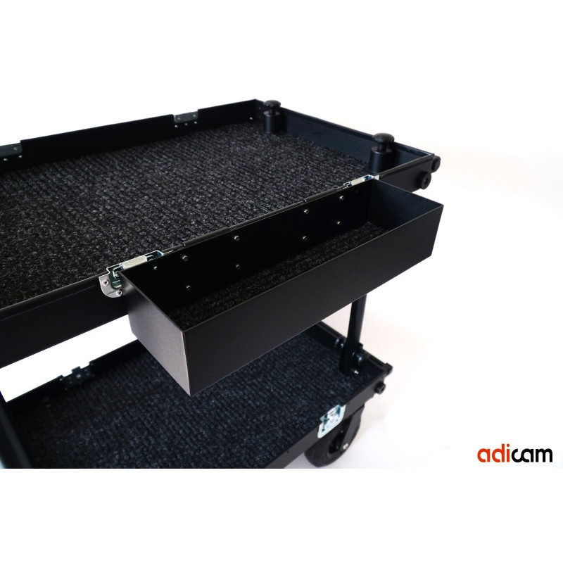 Notre bac adicam a été conçu pour stocker les petites pièces d'équipement tout en étendant votre espace de travail. Vous n'avez besoin d'aucun outil pour le monter, il suffit de le poser sur le bord du couvercle supérieur. Il peut être accroché sur le côté le plus long/court du chariot. Compatible avec les modèles STANDARD et MAX.