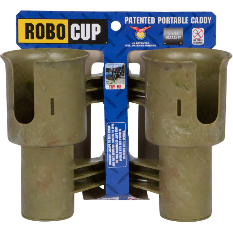 Le RoboCup est un porte-gobelet double portable breveté qui maintient fermement deux boissons, tasses, téléphone, outils et plus encore.