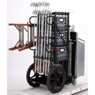 Caractéristiques : Système de verrouillage automatique maintenant les pieds et les caisses de lait lorsque le chariot est couché ; Contient (8) pieds en C ; Contient (2) pieds combo ; Contient (5) petits pieds électriques ; (3) Compartiments coulissants pour caisses de lait ; Contient des sacs de sable ; (2) Supports télescopiques extractibles pour échelle ; Bac de rangement supérieur (contient (1) caisse de lait) (L15 x l20 x H2)(L381mm x l508mm x H50mm) ; Compartiment inférieur (L22 3/4 x l18) (L578mm x l457mm)