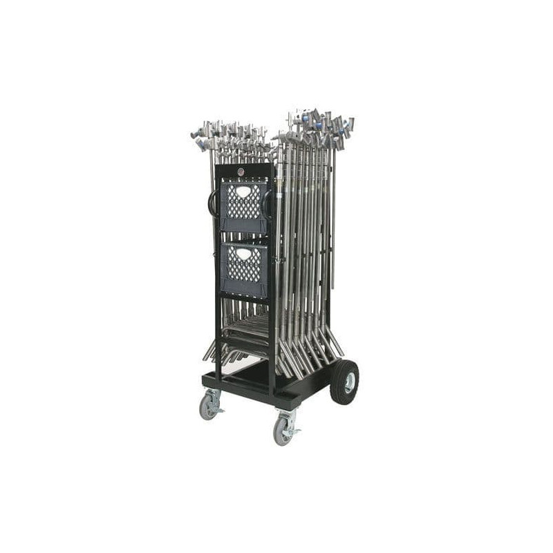 Caractéristiques : Contient (19) C-Stands ; Contient (2) pieds Hi-Roller ou (3) pieds Combo bas (Section arrière) ; Contient (2) pieds Combo ou (2) pieds Combo bas (Section avant) ; Contient (2) caisses à lait ; Boîtes utilitaires intégrées (2) P8 x L13 1/4 x H4 (P20,3cm x L33,7cm x H10,2cm) ; Le plateau inférieur contient des sacs de sable (L19 3/4 x L13 3/4 x H3) (L47,6cm x L34,9cm x H7,6cm) ; Plateau supérieur (26 x L13 3/8) (L66cm x L34cm) ; Frein à main