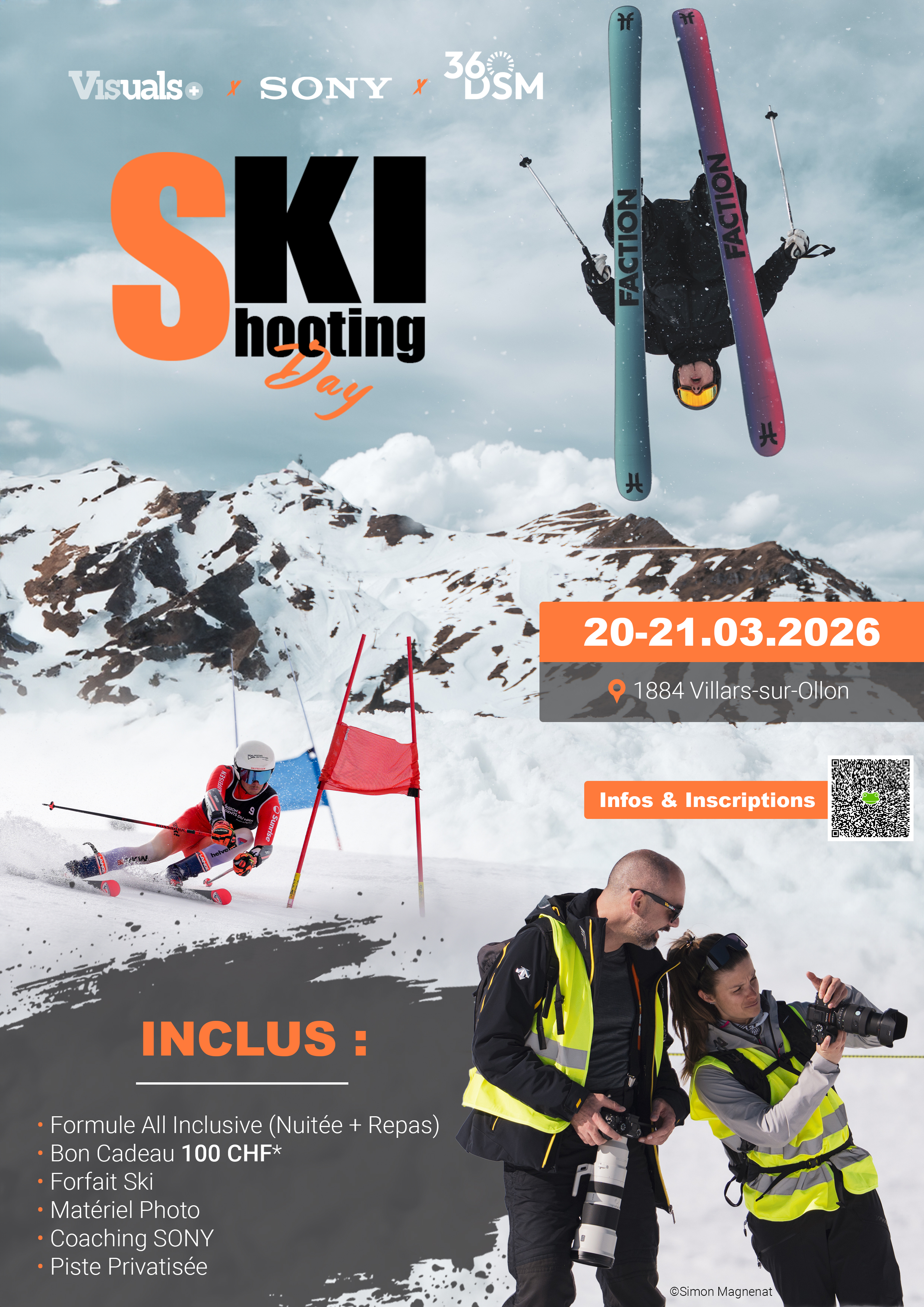 Cette année encore, Sony et Visuals Switzerland vous font vivre une expérience unique en montagne, entièrement dédiée à la photographie sportive, au cœur de l’univers du ski freestyle et du ski alpin.