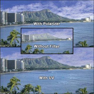 - Filtre polarisant circulaire = Élimine les reflets et augmente la saturation des couleurs sans affecter l'équilibre général des couleurs - UVP = Réduit le bleu excessif ; Élimine la brume et peut améliorer la netteté de l'image ; Protège l'élément avant de l'objectif |