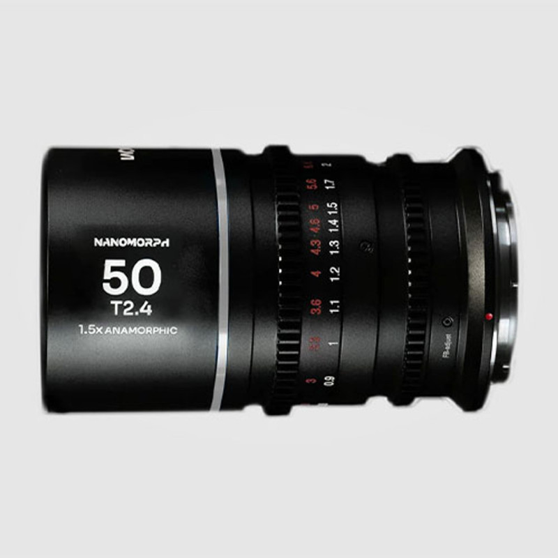 This Laowa Nanomorph 50mm T2.4 1.5x S35 Anamorphic Lens is a slender, compact anamorphic lens that captures high-definition video with 1.5x anamorphic squeeze on cameras with S35 sensors. It features a focal length of 50mm, a DJI DL lens mount, an aperture range of T2.4 to T22 for a deep depth of field, and 13 iris blades for a shallow depth of field and soft bokeh.