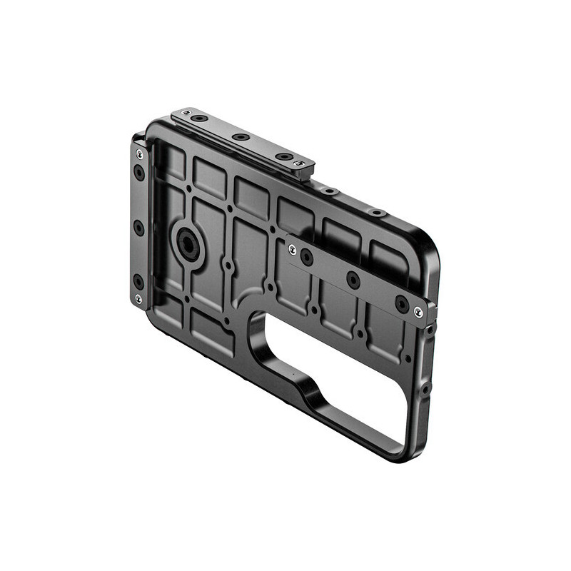 La plaque se monte sur la caméra à l'aide du Top Plate, du système Ultra Handle ou des Rails latéraux de Wooden Camera, et fournit quatre rails d'accessoires réglables pour monter et ajuster la position du viseur.