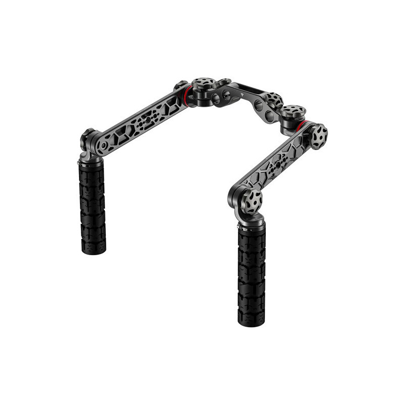 Le kit de poignées est conçu pour la force, le confort et la rapidité sur le plateau. Ce kit comprend une barre transversale de 15 mm, deux extensions de 6 pouces, une paire de poignées de style BMX ODI, des boutons en acier inoxydable avec revêtement DLC, et huit anneaux de couleur pour personnaliser l'identification de la caméra.