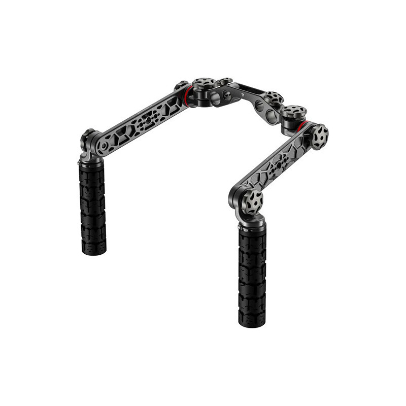 Le kit de poignées est conçu pour la robustesse, le confort et la rapidité sur le plateau. Ce kit comprend une barre transversale de 19 mm, deux extensions de 6, une paire de poignées style BMX ODI, des molettes en acier inoxydable avec revêtement DLC et huit anneaux de couleur pour la personnalisation de l'identification de la caméra.
