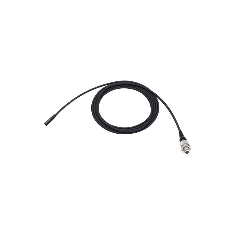 Le microphone électrostatique à condensateur à double capsule ultra-compact Sony ECM-90BC est un microphone omnidirectionnel avec une réponse en fréquence plate et large et une conception résistante aux éclaboussures, se terminant par un connecteur LEMO 3 broches. Il peut être utilisé pour capturer l'audio pour des applications de scène, de théâtre, de diffusion et de télévision lorsqu'il est associé à un émetteur sans fil (vendu séparément). De plus, le microphone comprend un câble de 1,58 m, une bonnette en uréthane et des clips de fixation verticaux et horizontaux.
