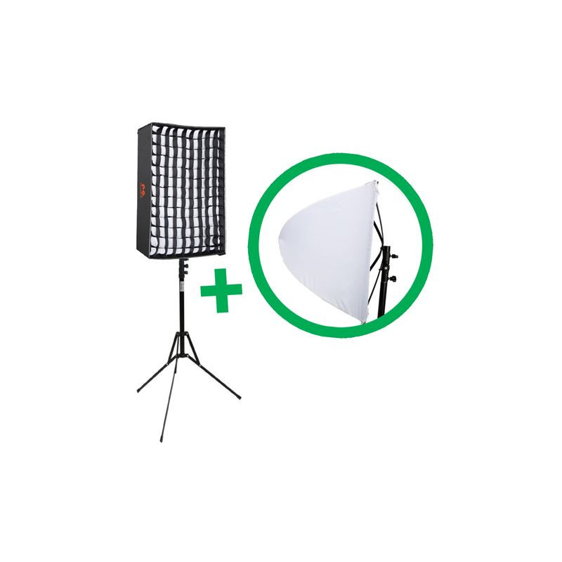 Ce kit se compose d'un panneau RX-12T avec tous les accessoires nécessaires. Vous recevez un trépied LMC-1900, un softbox et un nid d'abeille.