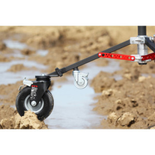 Le Matthews Rock n' Roller Monitor Wheel Set se compose de trois pneus en caoutchouc mousse semi-pneumatiques compatibles avec le Monitor Stand II et le Slider Stand. Les pneus se montent rapidement et se fixent aux pieds du support par des ressorts de retenue en acier. Les roues ont un diamètre de 8" et une épaisseur de 2", elles pivotent et roulent facilement sur différents types de terrain. Le frein supérieur au-dessus de chaque roue bloque à la fois le pivotement et le roulement de manière facile et fluide.