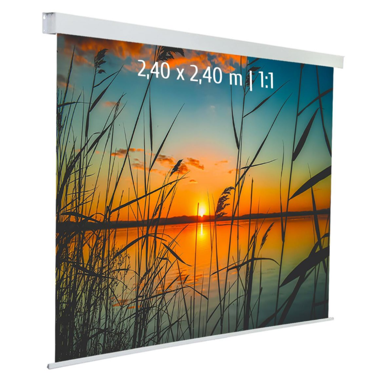 L'écran de projection motorisé KIMEX 042-3625 offre une image de 240 x 240 cm au format 1:1, idéal pour diffuser tout votre contenu dans des environnements professionnels ou éducatifs.