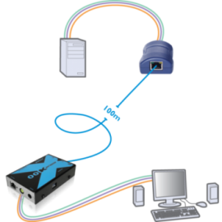 L'ADDERLink X100 a été conçu pour les applications où le clavier, la souris, la vidéo haute qualité et l'audio doivent être étendus jusqu'à 100 m (330 pieds) via un câble UTP de catégorie 5 ou supérieure.