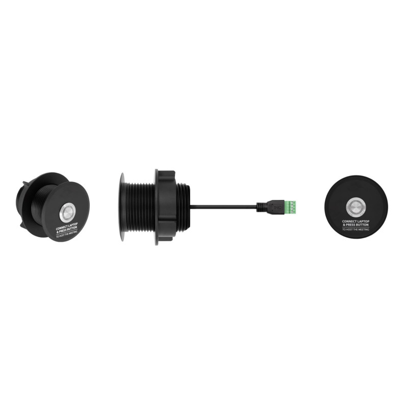 Un commutateur élégant de qualité métallique conçu pour améliorer subtilement les tables de conférence. Avec un design épuré et illuminé, ce bouton permet de basculer sans effort entre les hôtes PC de la salle et les ordinateurs portables, offrant une solution fluide et sophistiquée pour les scénarios BYOM.
