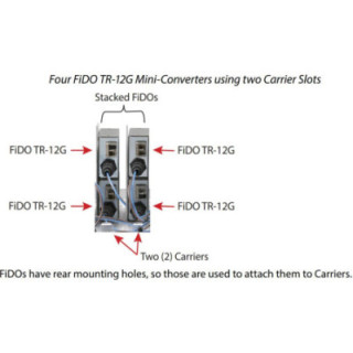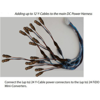 Étant donné que le DRM2 peut fournir 200 watts de puissance, le format plus compact des FiDO mono et double canal avec leur faible consommation d'énergie permet de prendre en charge jusqu'à 24 FiDO plus petits dans le DRM2. Cette configuration nécessite l'achat du câble Y DRM2-YC en option.