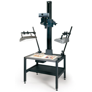 Fabriqué en tube d'aluminium spécial, anodisé noir, avec échelles imprimées en cm et en pouces. Réglage de la hauteur motorisé, avec deux vitesses. Télécommande filaire