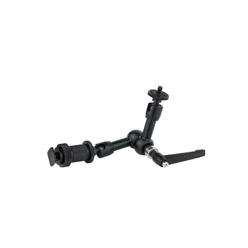 Un bras articulé conçu avec précision, destiné à supporter des moniteurs de terrain ou des accessoires.