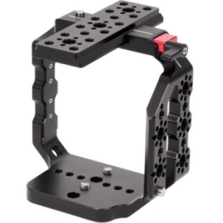 La caméra se monte dans la cage à l'aide de deux vis inférieures, et la cage protège votre caméra tout en maintenant l'accès aux commandes et aux ports de tous les côtés. Les accessoires peuvent être montés autour de la cage en utilisant les filetages 1/4"-20 et 3/8"-16 ainsi que les filetages dotés de trous de positionnement anti-rotation de style ARRI.