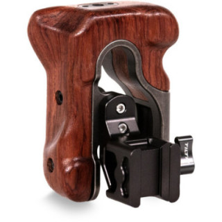 Le style et le confort sont les caractéristiques principales de cette poignée en bois gauche Tiltaing Type VI de Tilta, avec une finition en aluminium gris tactique. La poignée est sculptée à la main en bois de noyer noir pour une prise en main attractive, confortable et stable en température, montée sur un cadre en alliage d'aluminium, offrant support et résistance pour le montage d'accessoires.