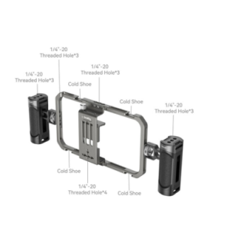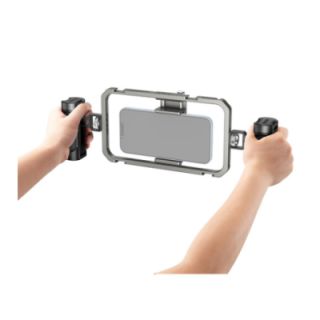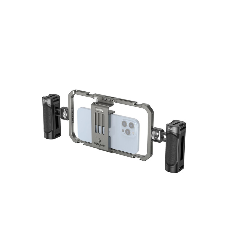 Conçu pour le vlogging, le streaming en direct, la réalisation de films sur mobile et plus encore, le kit vidéo tout-en-un basique SmallRig est un ensemble du fabricant qui contient la cage universelle pour téléphone portable et deux poignées latérales légères. La cage sécurise votre téléphone et rend la prise de vue plus stable tout en permettant aux utilisateurs de monter des périphériques à l'aide de ses supports pour griffe froide et de ses fixations 1/4"-20. Les poignées latérales se fixent à la cage pour offrir encore plus de sécurité et de stabilité à votre appareil mobile portable, et elles sont dotées de filetages 1/4"-20 supplémentaires et de surfaces en caoutchouc antidérapantes.
