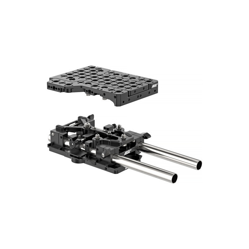 Le Basic Cine Set pour Canon EOS C400 d'ARRI offre un montage d'accessoires léger et des transitions de montage rapides pour votre caméra de cinéma numérique C400. Cet ensemble comprend une top cheese plate, un adaptateur de plaque BPA-5, une plaque inférieure avec des supports de tiges 15mm LWS avant et arrière, et une paire de tiges de 15mm de 9 pouces.