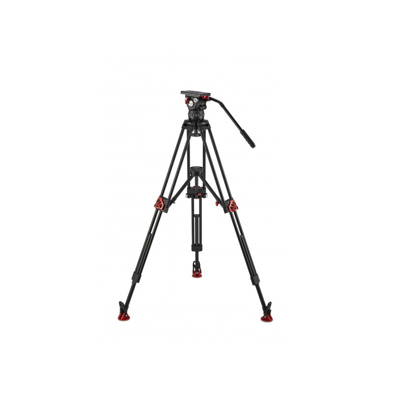 Système de trépied incluant la tête fluide Elite 15, le trépied aluminium 3S-Fix ENG/AL2, la barre de pan Elite ELPB-1, l'écarteur moyen MSP-3, les pieds en caoutchouc RF-2 (x3) et le sac de transport amRade tripodBag Traveler (2709.0444)