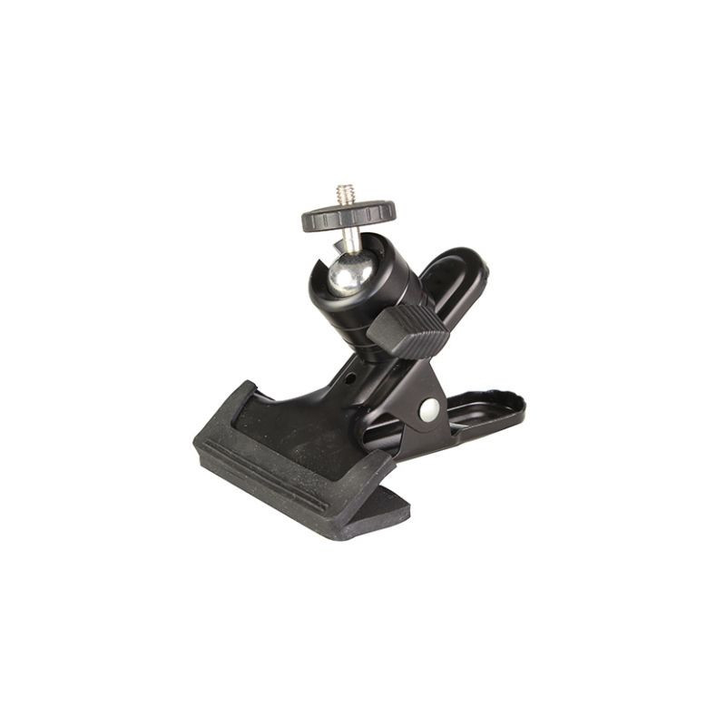La rotule SH-17 Falcon Eyes + Pince est composée d'une pince à ressort qui peut être fixée sur une surface plane.