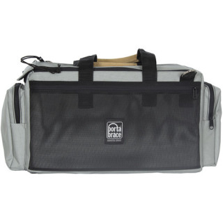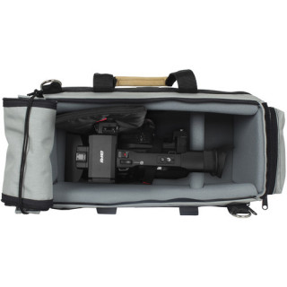 The Porta Brace Cargo Camera Edition platinum carry case can hold a fully assembled professional video camera up to 16.5" in length in the main compartment with 9" of height. It can also be used to carry a complete DSLR camera kit. For additional equipment storage, the bag features two padded external side pockets, two external front and rear flat zip pockets, and two internal front and rear pockets.