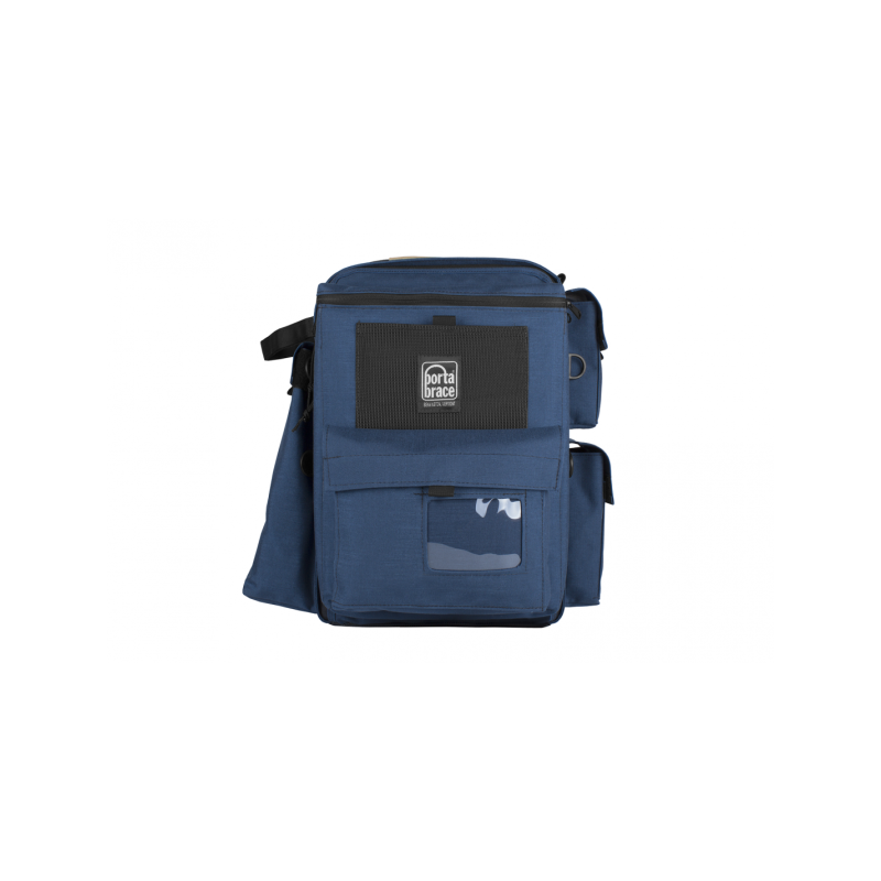 The Porta Brace BC-1N (Signature Blue) backpack is designed to carry and protect a DSLR camera with mounted lens, two additional lenses, a tripod and accessories. It features a laptop compartment that can accommodate a computer with a screen up to 17". The bag is made from 1000-denier Cordura nylon with a 2.54 cm grey foam interior and Slip-Not non-slip material on the bottom. It includes a kit of padded flexible dividers and padded inserts that organise and protect the camera and accessories. There is an exterior tripod pocket and a strap that hold the tripod firmly in place during transport.