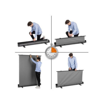 Practical roll-up background in black with an extra large net area 145 x 191 cm (WxH). Ideal for streaming and cutting out as well as a background for low-key photography. Set up in 15 seconds, Self-standing at any height thanks to the permanently integrated pneumatic scissor-type clamping frame. Stored in a stable transport case with fold-out feet for easy transport and a secure stand.