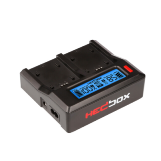 The Hedbox RP-DC50 Digital LCD Dual Battery Charger Kit with RP-DLPE6 battery plates is a two-bay solution that safely charges your batteries while providing a 2.1A, 5 VDC USB output. Two Canon LP-E6 compatible battery plates are included in this kit. Charge a single battery or simultaneously charge two batteries in less time than it takes to charge them individually. The dual-bay charger features interchangeable battery plates, which is useful when you have more than one type of battery in your kit. The backlit screen displays the battery charge status in both bays, and being backlit, you can easily read the display in bright or dim conditions. The charger supports standard and fast charging, the latter providing approximately 1.5 times more amperage for faster charging. A built-in 2.1A USB port allows you to charge USB accessories. The charger has overcharge and overheat protection, and can also detect short circuits in the battery itself. - The RP-DC50 charger can support two different battery plates at the same time. This allows you to mix and match batteries. For example, you can charge an L-series battery at the same time as an LP-E6 battery. - The LCD screen provides a clear display of charging status, and the backlight allows you to read the screen even in the dark. Intelligent charging systems such as Constant Current/Constant Voltage (CC/CV) charging mode where the charger's CPU automatically adjusts the charging current to be lower than the maximum charging current the battery can accept to protect it from overcharging. The intelligent control MCU can automatically identify the voltage and number of batteries present on the charger, and prevent overcharging based on the selected charging mode. - Fast charging is available at the touch of a button to activate a high-speed charging mode. In standard charging mode, the power is 1A per slot and 0.5A for both slots. In fast charging mode, the charger provides 1.5A current per battery slot or 0.8A for both slots. When Boost mode is activated, the Boost icon is displayed. Please note that Boost mode is only recommended for use with batteries that have internal overcharge/overheat protection. - The charger automatically adjusts its charging voltage to match the connected batteries. - The charger can be powered by the included AC adapter or the included car cigarette lighter power cord. Please note that to charge 14 VDC (or higher) batteries, you must power the charger via the AC power cord. - Please note that the USB power port is only active when the charger is in standard mode, and it is disabled when the charger is in Boost mode.