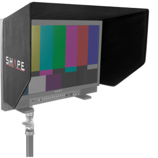 The SHAPE Universal Sun hood is designed to fit 24 monitors. Use it on sets and in studio to keep glare off your monitor screen. Velcro® type strips are included for attaching the sun hood to the monitor. Monitor top handles will have to be removed to allow a tight fit around the monitor.