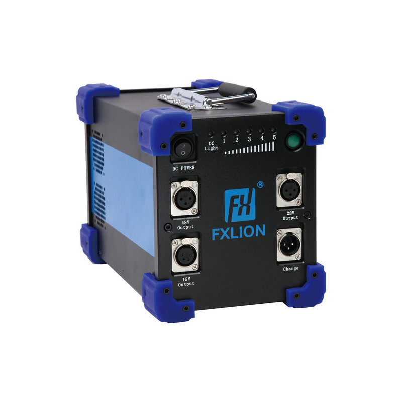 Get a portable, lightweight and silent solution to power your powerful LED lights in the field with the Mega 620Wh 15/28/48V Lithium-Ion Battery from Fxlion. Designed to offer more power in a compact format, this rechargeable Li-ion battery has a capacity of 620Wh - sufficient to power multiple light sources simultaneously. The Mega Battery offers one XLR 4-pin output and two XLR 3-pin outputs simultaneously. A male XLR 3-pin input allows you to connect the battery to the included PL-7115 charger and a five-level LED charge indicator allows you to monitor remaining power. - To power 100, 200 and 400W LED lights as well as 15, 28 and 48V equipment - One XLR 4-pin output and two XLR 3-pin outputs - Smart PCB for battery protection - Five-level LED charge indicator
