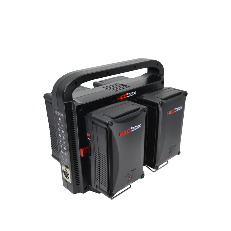 With an XLR 4-pin female connector on the front panel, the MEGABANK-4L provides an additional DC output to continuously power external units such as professional camcorders, video monitors, LED lighting and other professional broadcast products. Connected with the specially designed Hedbox high-flexibility professional power cable RPC-DC4X4-XLR 4-pin female to male (included in the box), the charger can be used as an AC-DC adapter with DC 14.5V/4.5A, 75W output.