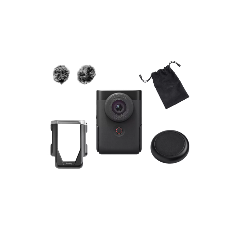 Delight your subscribers and attract new ones with Canon's purpose-built 4K camera for vlogging. A lightweight all-in-one camera that you can easily slip into your pocket. With everything that goes with it - a foldable display, large stereo microphone and even a built-in stand - you'll be up and running in seconds. (incl. bag, lens cap, microphone windscreen, USB-C cable, mini rig)