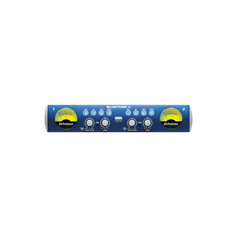 The PreSonus BlueTube DP v2 is a two-channel microphone/instrument preamplifier with "Dual Path" technology that offers the best of both worlds. It features a solid-state preamplification stage and a valve preamplification stage in each channel, offering either warm, rich valve sound or solid-state transparency. When Tube Drive is disabled, the valve preamplification stage is bypassed, providing ultra-quiet preamplification. When enabled, the signal passes through the valve preamp, providing everything from gentle warmth to aggressive distortion.