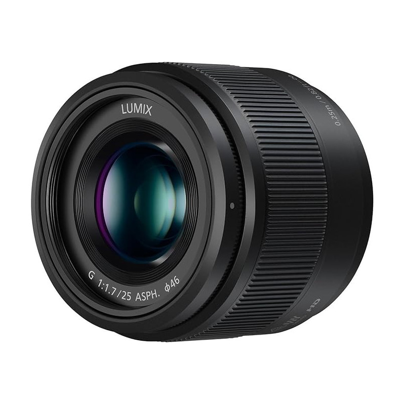 The Panasonic 25mm f1.7 LUMIX G ASPH lens offers a magnificent background bokeh effect for creating creative portraits. The fast f1.7 aperture allows handheld photography without flash in low-light environments and captures the real atmosphere of a scene with sharp and clear details. The lens offers a 50mm focal length (35mm camera equivalent) similar to that of the human eye when mounted on a Micro Four Thirds camera and takes advantage of Panasonic's 240fps contrast detection AF system. Its close focusing distance of 0.25m makes it suitable for a wide range of shooting perspectives. Key Features: - Fast F/1.7 aperture - Produces beautiful bokeh - Ideal for creative portraits - 50mm focal length (35mm equivalent) - Minimum focusing distance of 0.25m - Micro Four Thirds mount 50mm f/1.7 for an artistic foundation The fast F1.7 lens offers beautiful bokeh effect for more impressive and creative shots. Combined with a 50mm focal length (35mm camera equivalent), which almost matches the angle of view and sense of perspective of the human eye, this lens is ideal for portraits or landscapes as we see them. UHR (Ultra High Refractive Index) lens The UHR (Ultra High Refractive Index) lens and aspherical lenses enable uniform description from centre to edges. 240 fps drive capability It is compatible with sensor drive at max. 240 fps* to get the most out of fast AF cameras. An internal focusing system and stepping motor for smooth and silent operation work with the camera's high-speed, high-precision contrast AF system for photo and video recording.*Sensor drive performance varies depending on the camera.