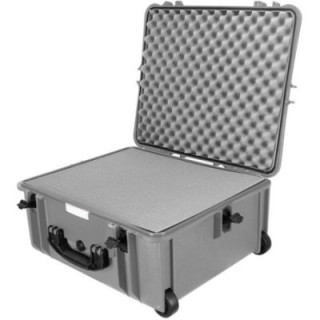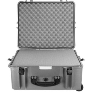 The PB-2750 hard case in platinum silver with foam from Porta Brace is a waterproof case made of unbreakable high-strength TTX01 plastic resin for transporting and protecting video, audio and photographic equipment. It features rigid but flexible handles for comfortable field transport, a retractable handle and built-in wheels.