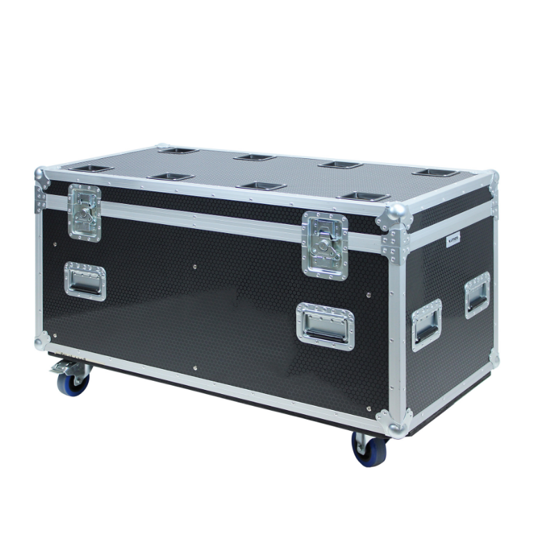 Organise and protect your equipment with the trunk-style flight case from Kimex, featuring integrated storage.