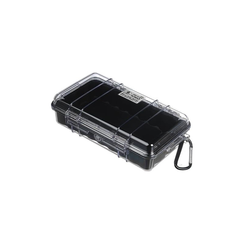 The Micro Case Clear Case with Black Liner is an unbreakable, watertight, airtight, dustproof, chemical resistant and corrosion proof case. It is made of copolymer and has a matching liner. The case has a speed lock, clear purge cap. The case can be attached to a belt or strap using the included carabiner.