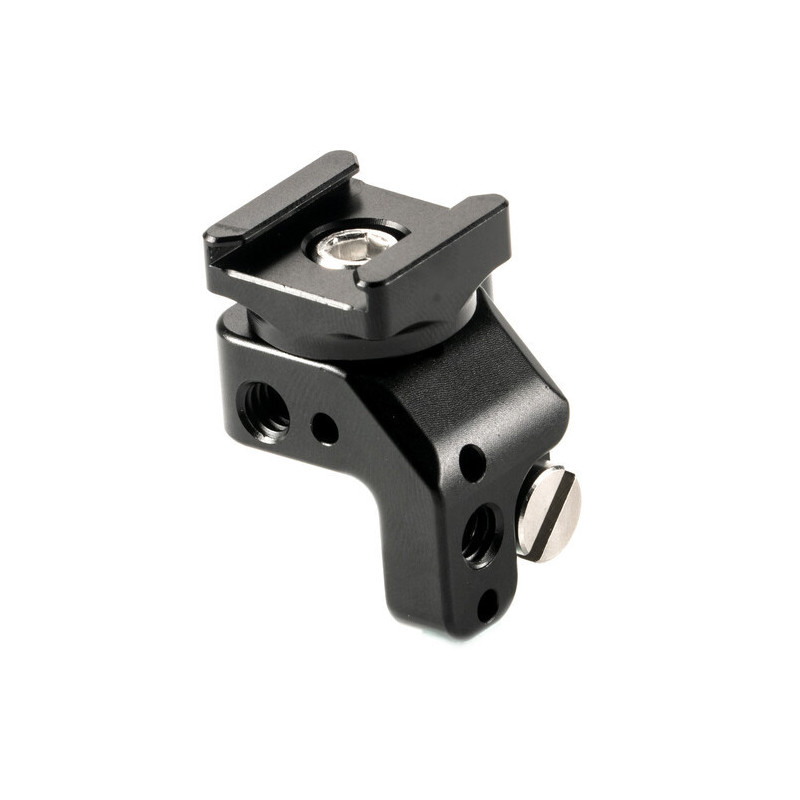The attachment mounts using the two included 1/4"-20 screws onto the camera, cage, or rig, and it provides multiple 1/4"-20 accessory threads and a shoe mount attachment to add a monitor, rod clamp, light, or microphone.