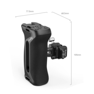 Capable of attaching to your camera cage with a simple "click", this SmallRig Snap-On Quick Lock NATO side handle offers right or left-hand grip with additional mounting points for your equipment. The NATO quick-lock clamp can attach the handle to any compatible NATO rail for easy installation. The handle can even be adjusted vertically by 3.5 cm to achieve optimal balance. Multiple 1/4"-20 threads and a hot shoe slot on top of the handle provide locations for attaching your fill light, external monitor or cable clamp. There is even a wrist strap slot for added security. The handle is constructed from aluminium alloy and has a load capacity of 12 kg for heavier equipment. An integrated magnetic Allen key makes attaching and detaching accessories easier.