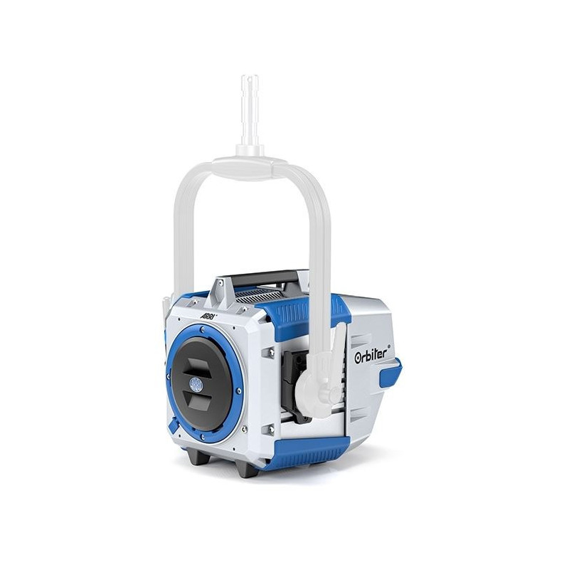 Launch a wide spectrum of brightness and color into your studio with the ARRI Orbiter blue/silver LED light without yoke, lens and cable, a tunable color lighting system with a powerful color engine and versatile, interchangeable optics. Featuring a processor four times faster than the SkyPanel, ARRI's 190-LED Spectra system offers a wide range of color features allowing you to create an enormous range of colors through its six-color light engine including red, green, blue, amber, cyan, and lime LEDs. With a high CRI rating of 98 and TLCI of 95, it offers a color temperature range of 2000 to 20,000 K to adapt to almost any lighting situation, and it also features 100 to 0% dimming with continuous and smooth adjustment. The light is also equipped with multiple sensors, including a smart color sensor mode to detect ambient light and adjust its output for fine color accuracy, a 3-axis accelerometer that detects pan, tilt, and roll movements, an ambient light sensor to keep your screen readable, heat sensors to keep the light cool, and even a magnetometer to orient your light in its geography. The Orbiter features a highly portable design that can change its optics in the blink of an eye using ARRI's Quick Lighting Mount (QLM), a bayonet-style connection similar to a camera lens mount. Available optics include 15, 30, and 60° open face optics that produce a directional beam; 15, 25, and 35° projection optics that produce a sharp, focused beam with uniformly distributed color; and small, medium, and large domes that provide a large area of soft light. The light can also be used with light banks, barndoors, honeycombs, and other light-shaping accessories available separately with the appropriate adapter. Using ARRI's Lighting Operating System (LiOS), you can control all color modes, effects, and lighting grids directly from the built-in control panel. LiOS offers eight color modes such as CCT, HSO, RGBACL, gel selection, X/Y coordinates, source matching, effects, and a custom mode that allows you to save over 240 favorites that can be applied to a DMX or interface. It also has three operational modes - high color rendering, high output, and low noise - for your preferred performance mode. Interfaces include 5-pin DMX input and output, two LAN ports, two USB Type-A ports, one USB Type-C port, and an SD slot for future upgrades. It also has a sync input for future applications that will sync with your camera. The light is weather resistant and can withstand dust and water splashes. Its redesigned mounting points secure an optional yoke for positioning with +/-90° tilt, and the yoke features a standard 1 1/8" Junior pin mounting point. Orbiter Option Orbiter models include a version without optics; small, medium, and large domes; 15, 30, and 60° open face versions; and 15, 25, and 35° projection versions. ARRI offers a range of open face and projection optics (lens housings), domes, light boxes, snoots, and barndoors. The interchangeable optics attach quickly and easily to the front of the light using the new QLM (quick lighting mount) system, which works like a giant camera lens mount. Powerful Color Inside each Orbiter is the Spectra light engine with a processor four times faster than ARRI's SkyPanel series and 125 times more memory, with plenty of room for future function updates. To produce extra-fine full color adjustment, the light engine adds amber, cyan, and lime to standard red, green, and blue LED colors in its 190 LED array. Capable of creating hard shadows with defined edges, the Orbiter's engine is 76 times smaller than an ARRI L10 Fresnel but has higher output while consuming the same amount of power. LiOS (Light Operating System) Building on features first introduced with the SkyPanel, ARRI's LiOS system also offers simplified DMX mode, over 240 presets, optics recognition, optimal performance modes, and multilingual support for worldwide use. Eight different color modes include CCT, HSI, individual color, x/y coordinates, gel, source, matching, and an ambient color sensor. Complete Sensor Suite The Orbiter features a built-in sensor suite with an ambient color sensor that reproduces color and intensity changes in your environment and offers two modes, continuous and momentary. Use momentary mode to get an instant measurement of your light levels, or switch to continuous mode to constantly adapt to changing light in an event space, etc. Its 3-axis accelerometer detects the Orbiter's pan, tilt, and roll, and this metadata can be used in future applications for placement optimization and effect production. It also includes a magnetometer that provides true global direction, an ambient light sensor that will automatically dim your control panel display, and a heat sensor that ensures safe operation at any temperature. Durable Construction The Orbiter has an estimated LED life of 50,000 hours. Its optional yoke mounts on a Junior pin, and it consumes nominally 400W and maximum 500W. It is built from aluminum with a quick-release +/- 90° yoke, powerful tilt lock, and manual operation. A complete connector suite includes DMX input, DMX output, two LAN ports, one USB Type-A 1.5A port, one USB Type-A 0.5A port, one USB Type-C 1.5A port, and an SD card slot.