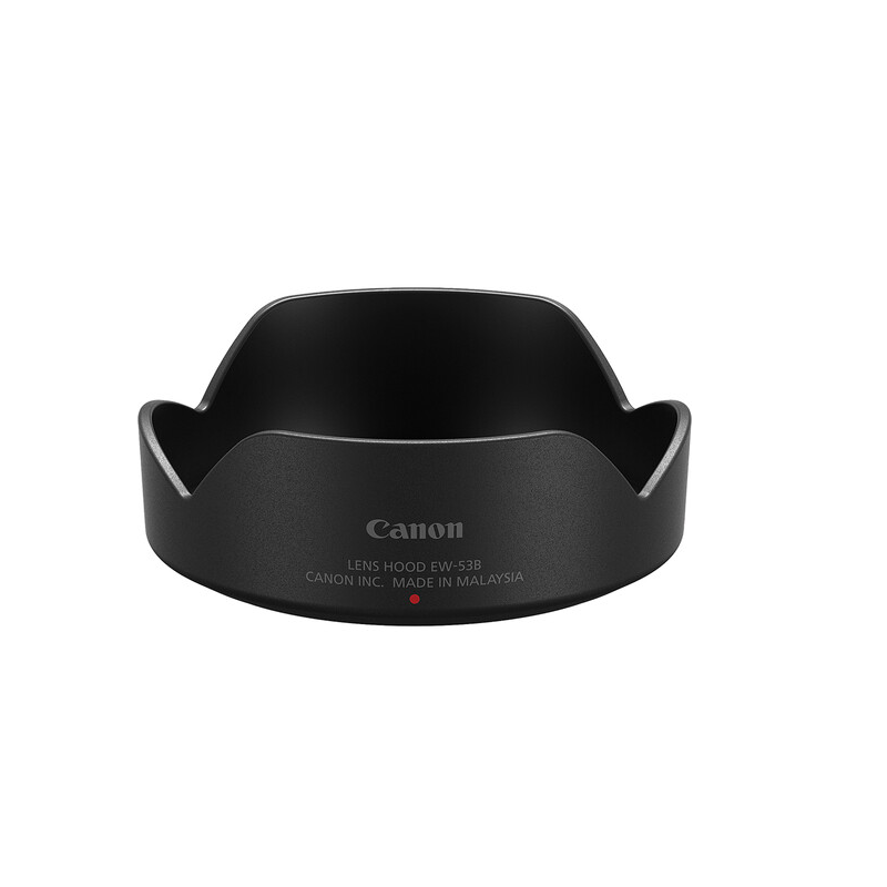 The Canon EW-53B lens hood is specially designed for use with the Canon RF-S 10-18mm f/4.5-6.3 IS STM lens and prevents stray light from entering through the front element. This lens hood also offers the additional benefit of preserving the quality of the lens glass by protecting it against accidental impacts.