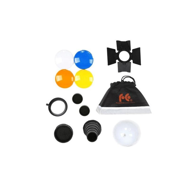 | Dimensions (cm): | 20x30 cm (Softbox) | ⌀11.1 cm (Colour filters) | ⌀15 cm (Diffusion ball) | ⌀6.5 cm and ⌀11 cm (Honeycombs) | |